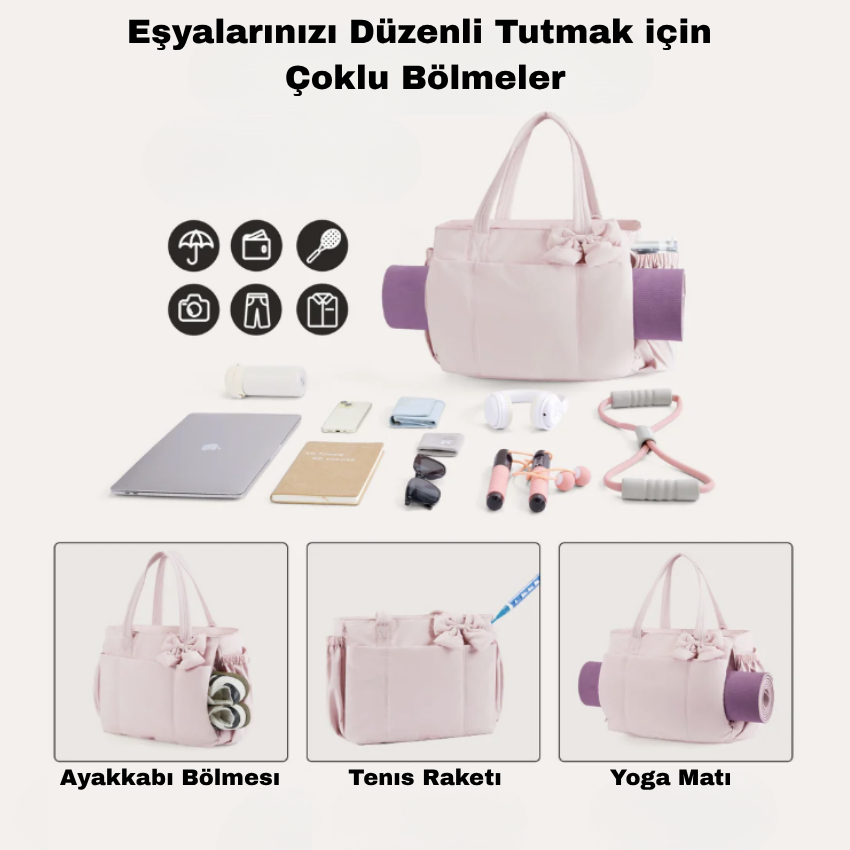 Anahtar, cüzdan, su şişesi, defter. Hepsi tek yerde, elinin altında.