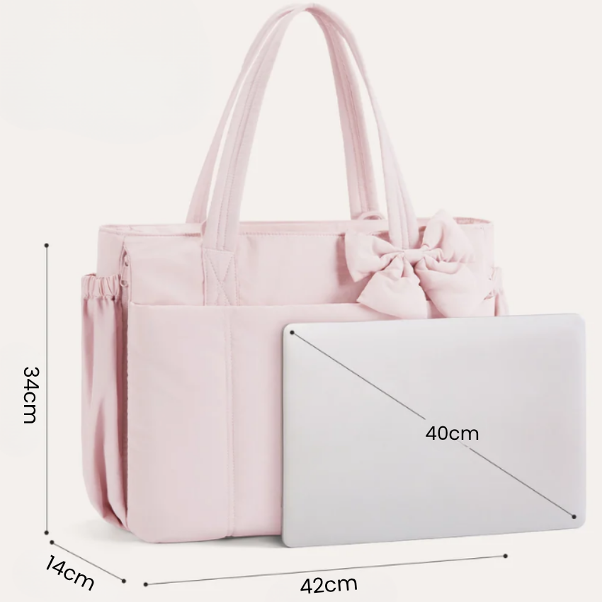 Bella Tote geniş iç hacmi ve akıllı bölmeleriyle gününü hızlandırır.